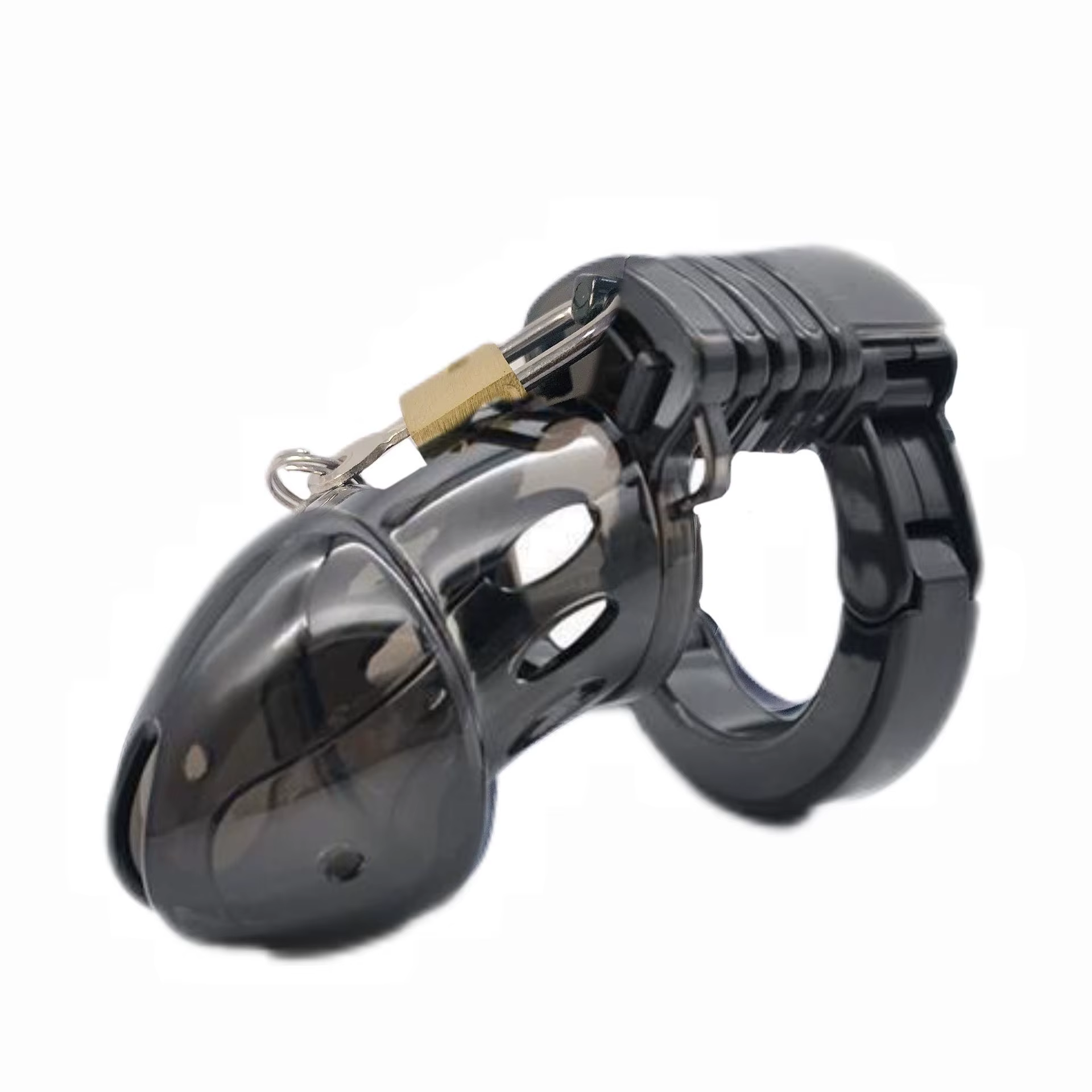 Mit diesem schmucken Peniskäfig wird ein aufmüpfiger Lümmel eingefangen und weggesperrt, so dass er nicht entkommen kann, bis jemand mit Schlüssel ihn wieder freilässt. Durch die Öffnungen links und rechts im Käfig kann der Gefangene nach Lust und Laune mit Krabbeln, Pieksen oder sonstigen kleinen Gemeinheiten in genau der Intensität behandelt werden, die er sich verdient hat.