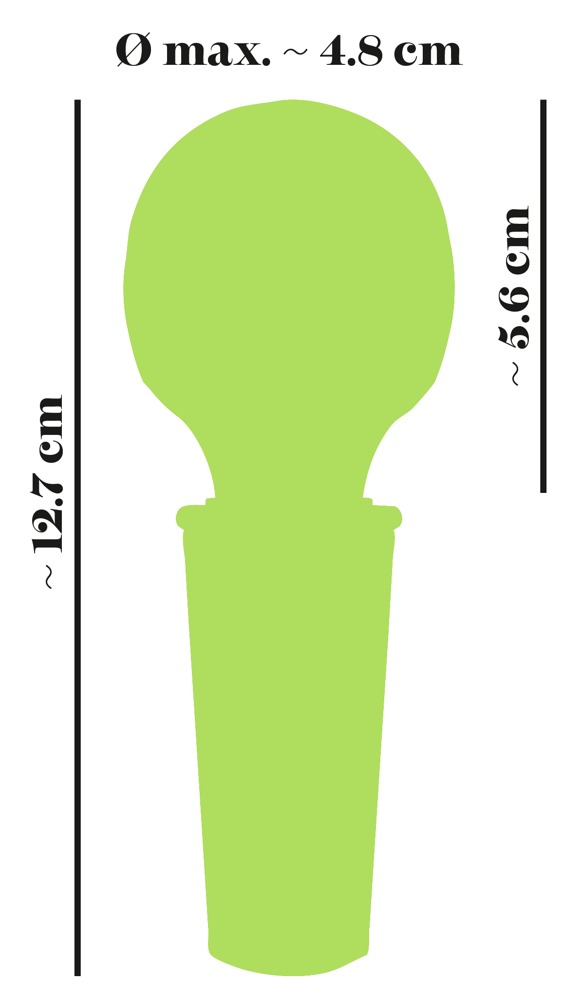Gesamtlänge 12,7 cm, Massagekopf 5,6 cm lang, Ø max. 4,8 cm.