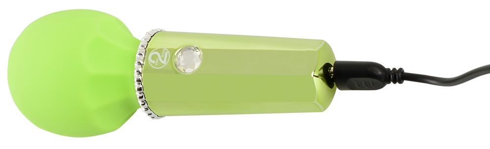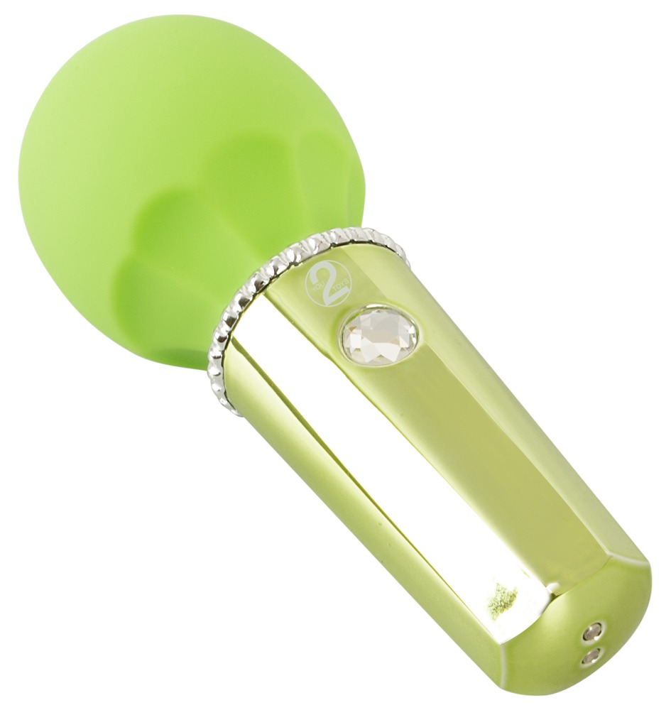 Kleiner handlicher Massagestab Mini Wand Lemon von You2Toys in fruchtig frischer Sorbet-Farbe und edler Metallic-Optik mit funkelndem Glitzerstein als Bedienknopf. Eignet sich mit seinem flexiblen, seidig soften Massagekopf für ausgedehnte Massagen genauso wie für die präzise Stimulation.