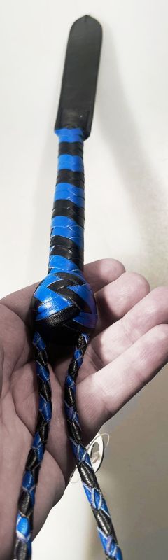 Blaue Lederpeitsche mit Griff "Modern Blue meets Baroque Gold"