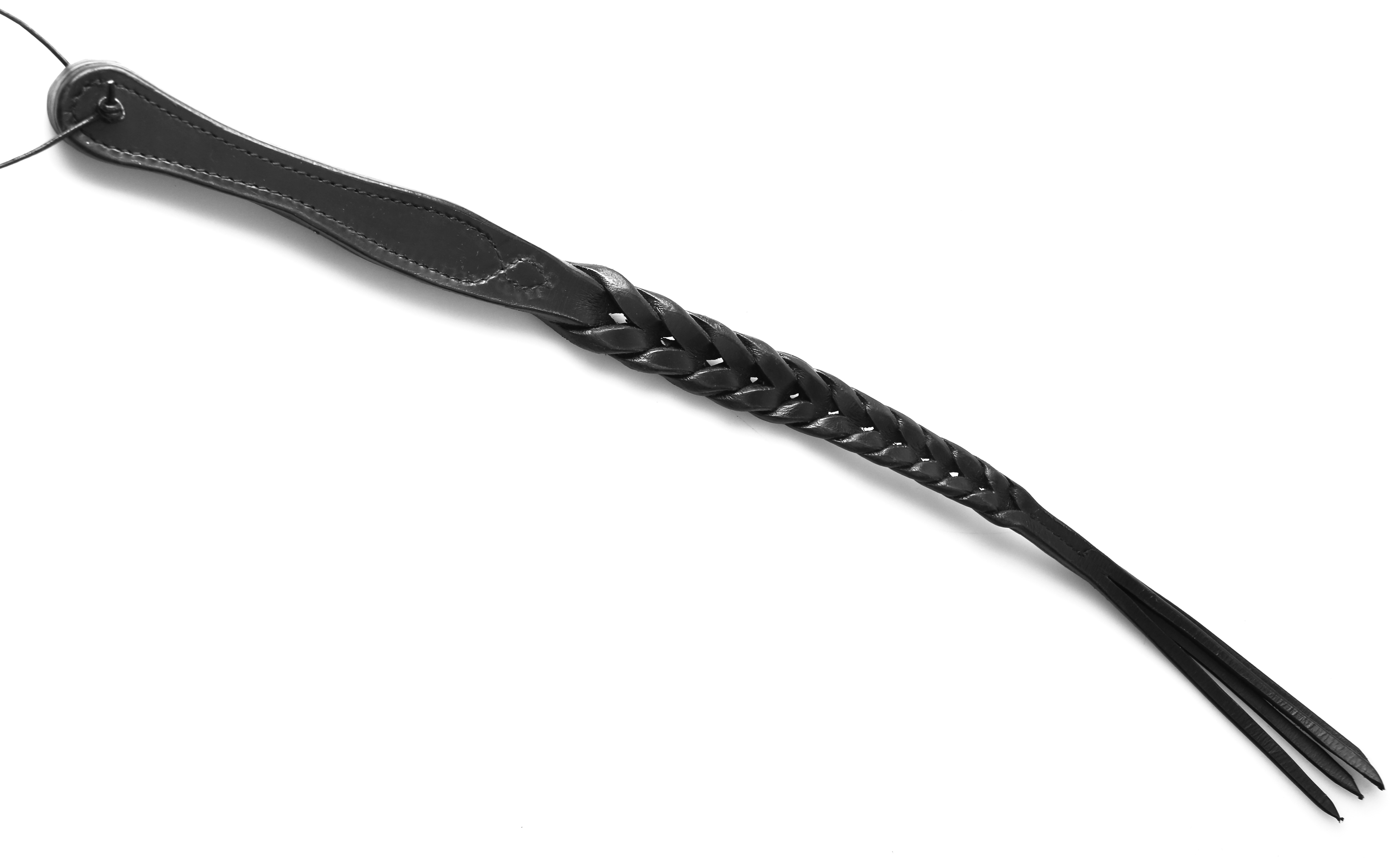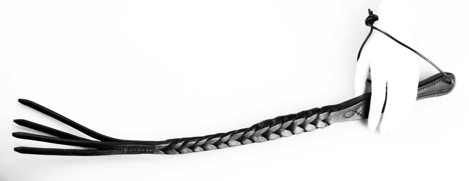 Dieses gertenschlanke Paddel aus schwarzem, geflochtenen Leder gefertigt, ist durch seine besondere Machart in vielerlei Hinsicht ein echtes Highlight , die vier spitz zulaufenden Enden erzeugen, je nach Schlagintensität, deutliche oder dezentere Spuren.