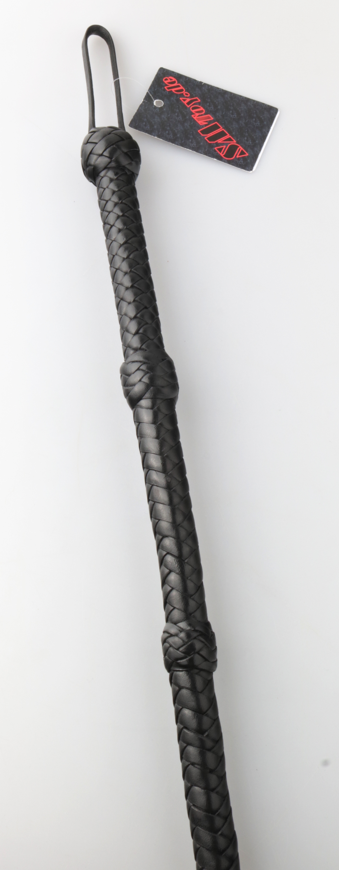 Peitsche mit einem festen Griff aus Leder.