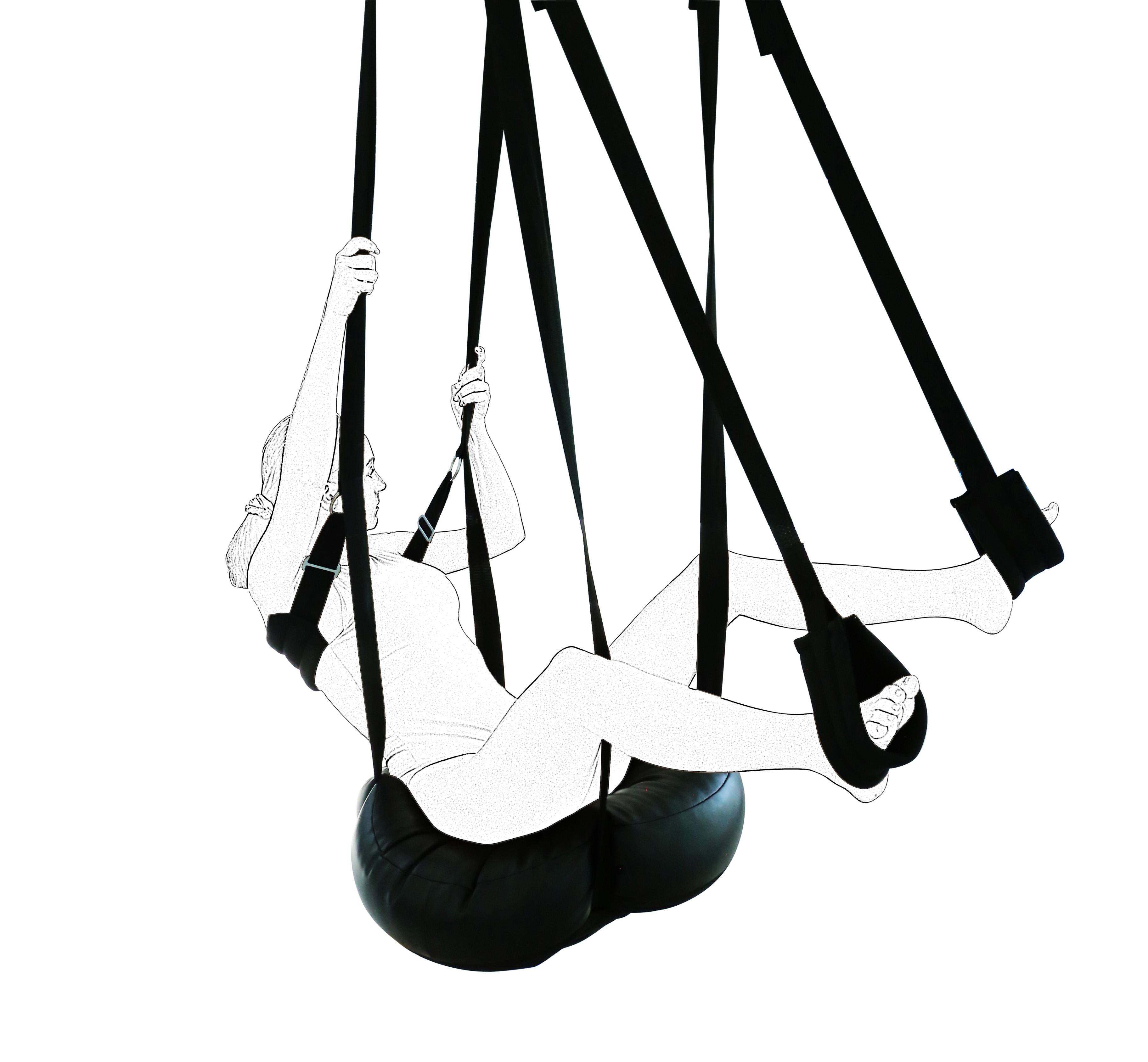 The 4 adjustable belts which hold the Sex DONUT are safely attached to the semi-circular metal bar,
